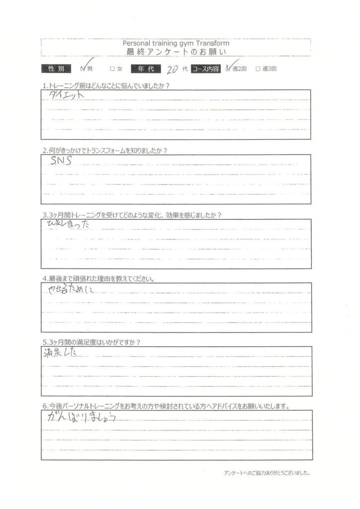 - 今後パーソナルトレーニングをお考えの方や検討されている方へのアドバイスを一言