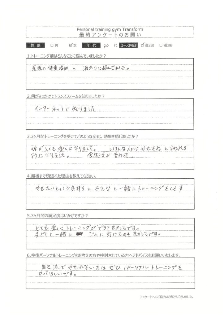 最終アンケート 30代 女性