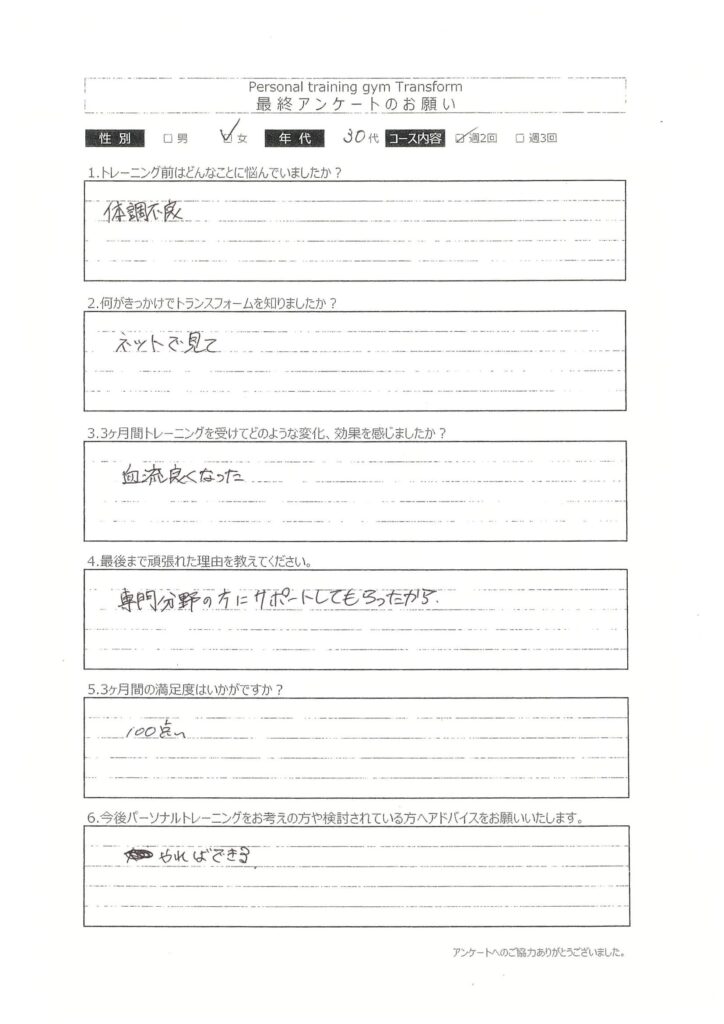 最終アンケート 30代 女性