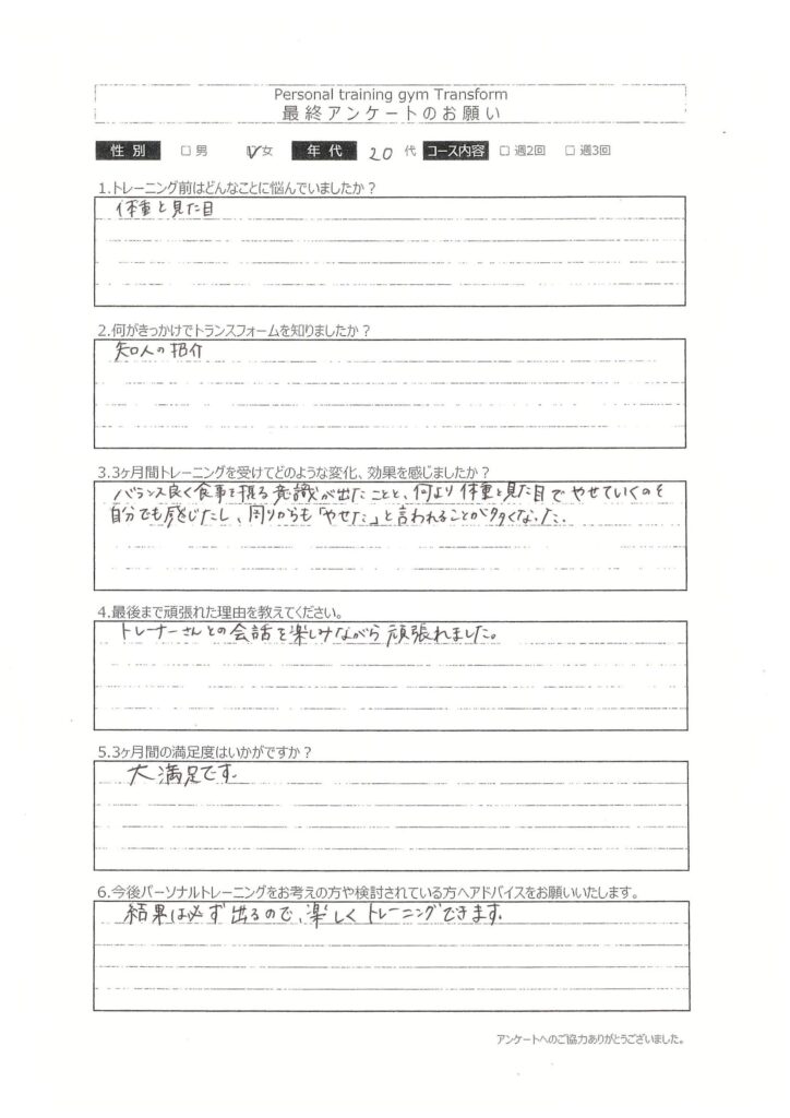 - 今後パーソナルトレーニングをお考えの方や検討されている方へのアドバイスを一言