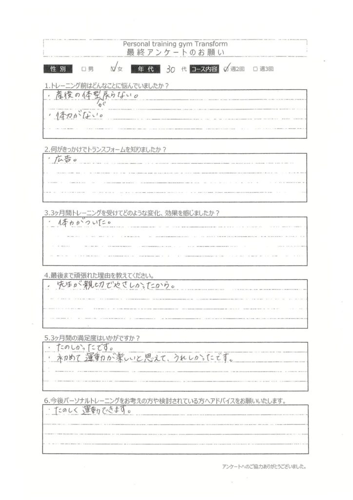 最終アンケート 30代 女性