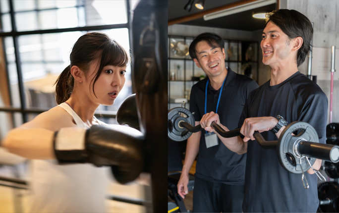 運動量やトレーニング内容の異なるコースを複数ご用意しております。ご自身の体力や目標に合わせてお好きなコースをお選びいただけます。